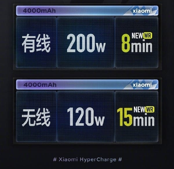 สำหรับระบบชาร์จเร็ว 200W หรือ HyperCharge ทาง Xiaomi เคยเปิดเผยให้ทราบก่อนหน้านี้ว่า สามารถชาร์จแบตเตอรี่ขนาด 4000mAh จาก 0-50% ได้ในเวลาเพียง 3 นาที และใช้เวลาเพียง 8 นาทีก็สามารถชาร์จแบตเตอรี่จนเต็ม 100% ได้แล้ว
